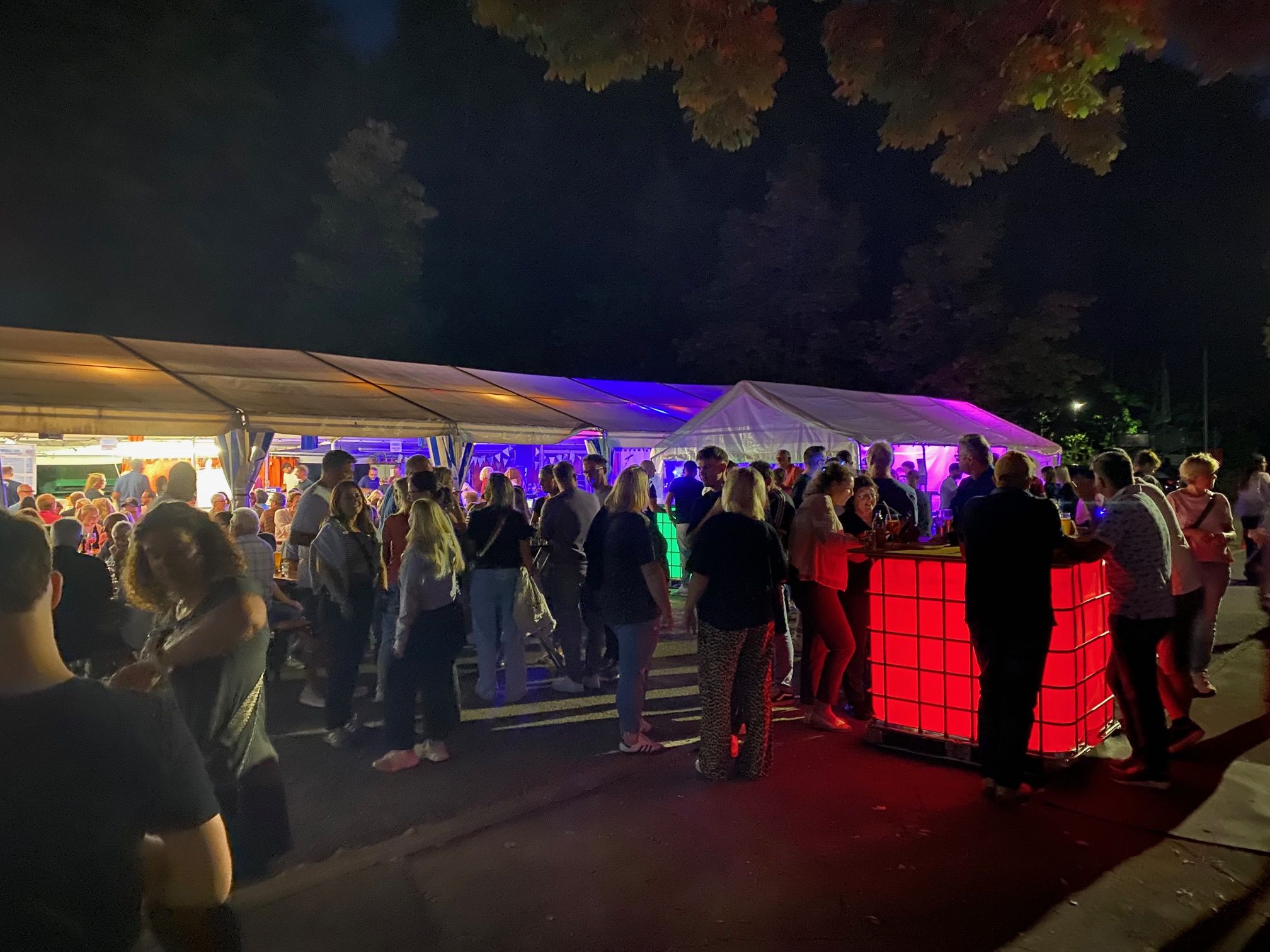 Gegen 20:30 Uhr startete der musikalische Act “DJ Norman E“ das Unterhaltungsprogramm im Zelt und die angrenzende Bar öffnete ihre Theke. Zum Leid des DJ´s, aber zur Freude der Besucher spielte sich, aufgrund der milden Temperaturen das Meiste außerhalb des Zeltes im Freien an der Bar und am Bierwagen ab. Dennoch durften wir uns über zahlreiche Besucher am Ende des ersten Tages freuen. |