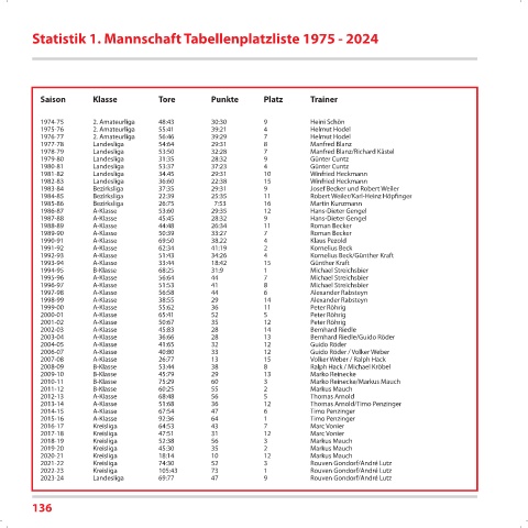 Statistik 1. Mannschaft Tabellenplatzliste 1975 - 2024