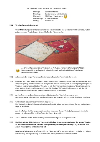 1975 Die Mehrheit der Mitglieder des Turn- und Fußballvereins stimmen der Fusion der beiden Vereine
