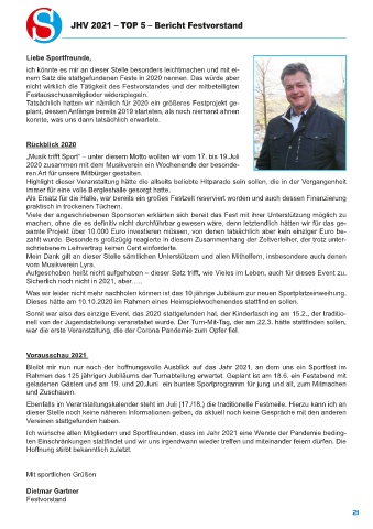 JHV 2021 – TOP 5 – Bericht Festvorstand