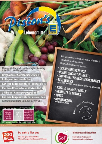 Unsere Märkte sind von Montag bis Samstag e Märkte sind von Montag bis Samstag